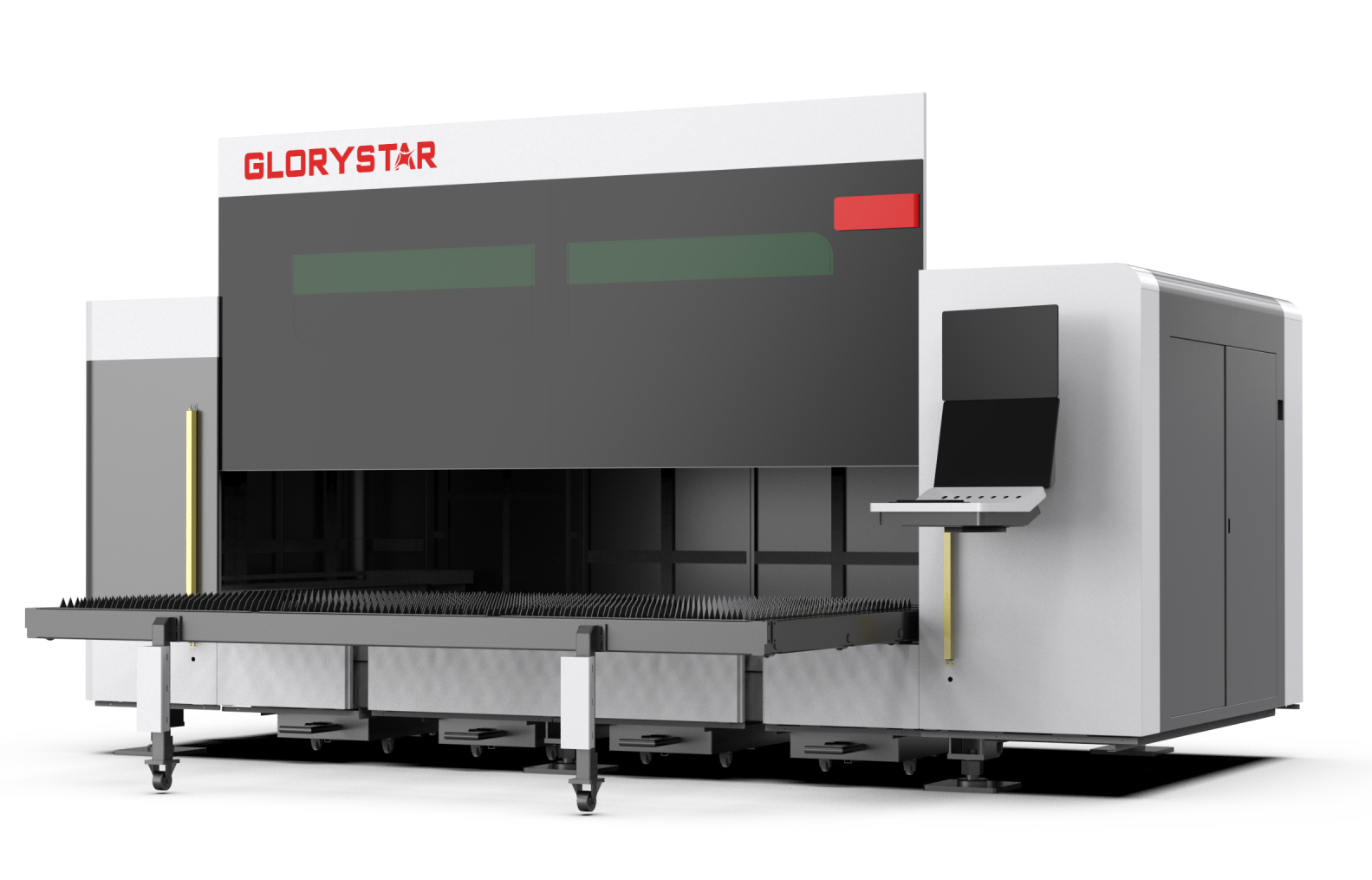 The all-new GS-C Series Fully Protected Lateral Laser Cutting Machine by Glorystar Laser. is a fast, flexible standard model designed for small-batch laser cutting, effortlessly meeting smart processing needs.