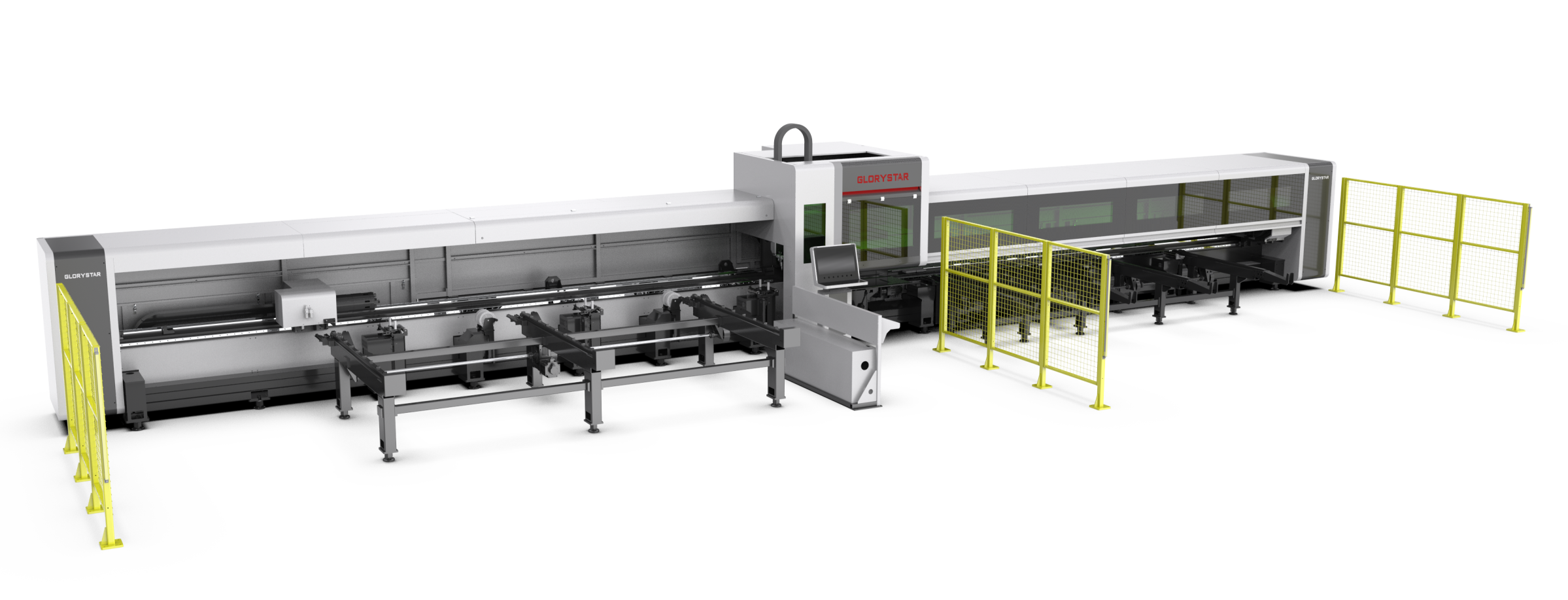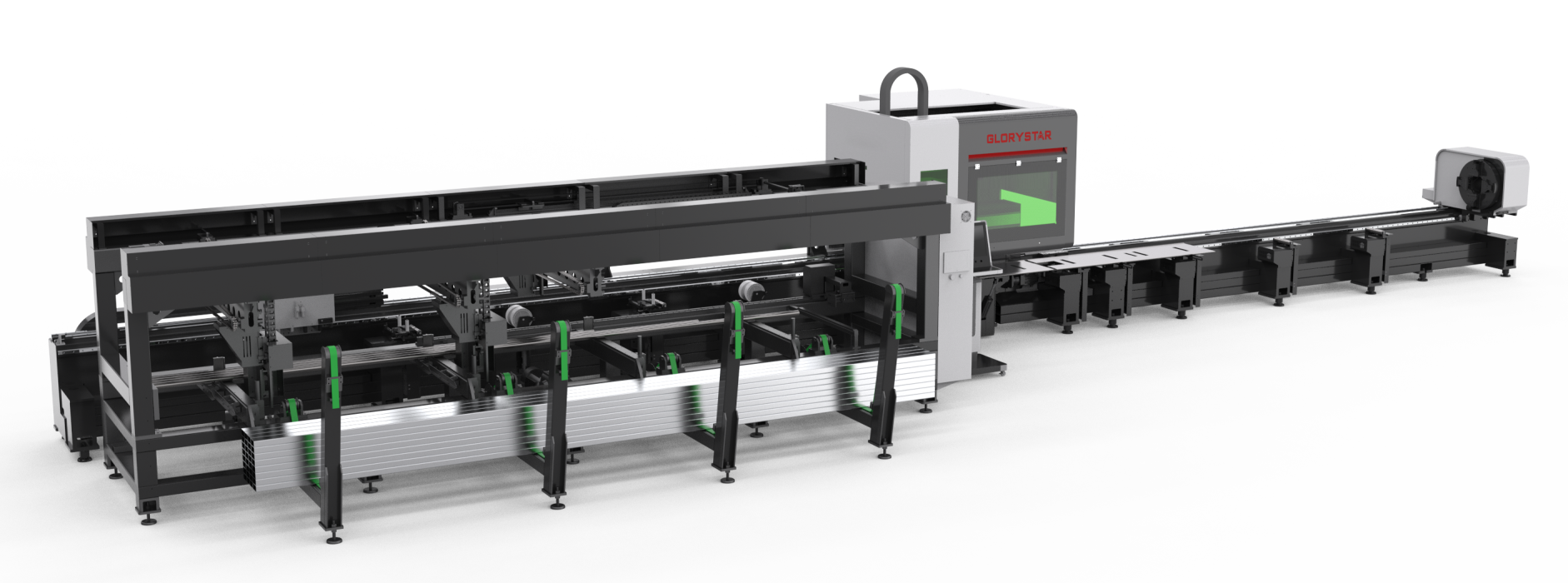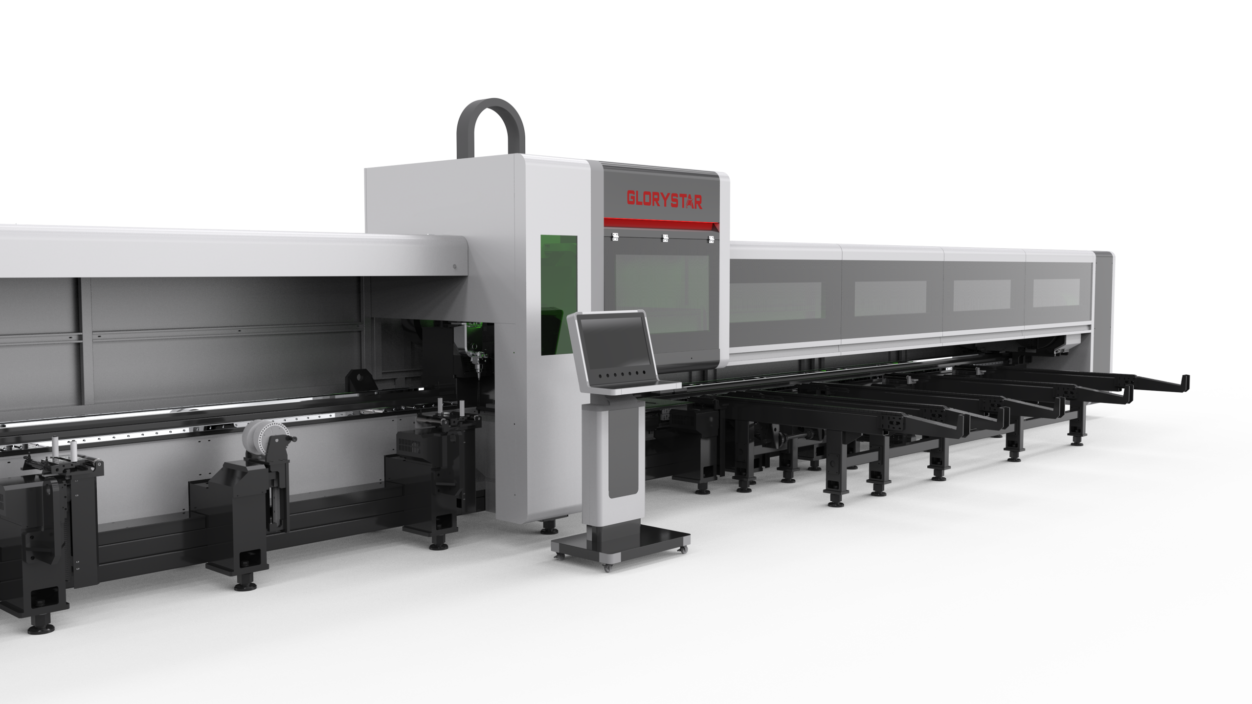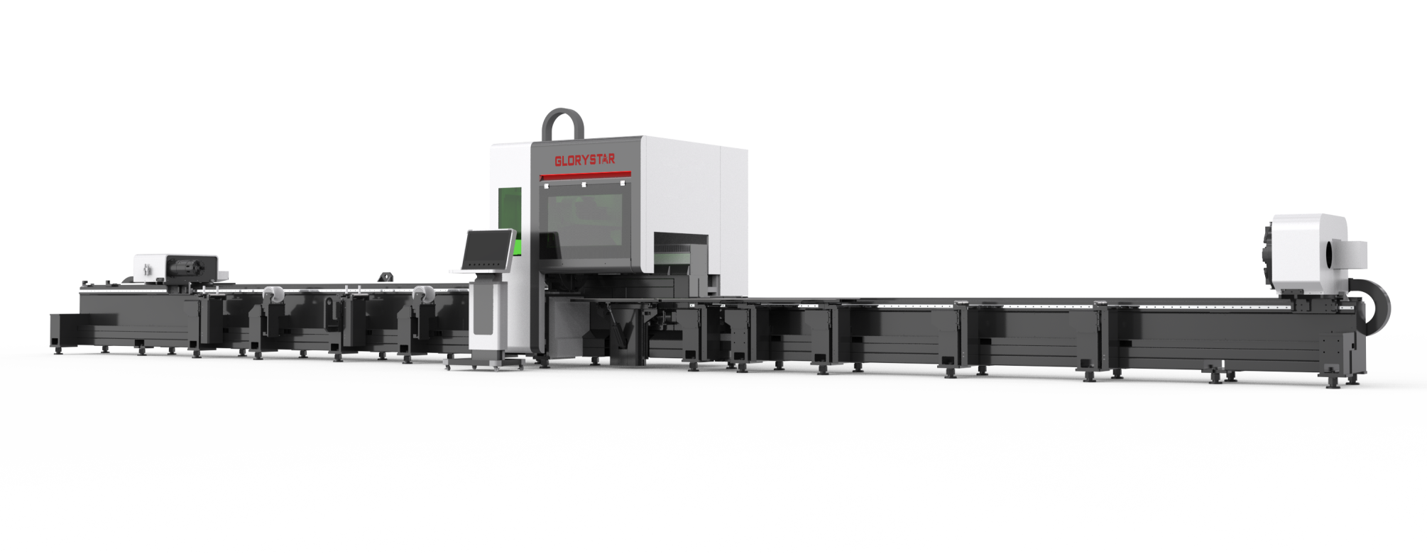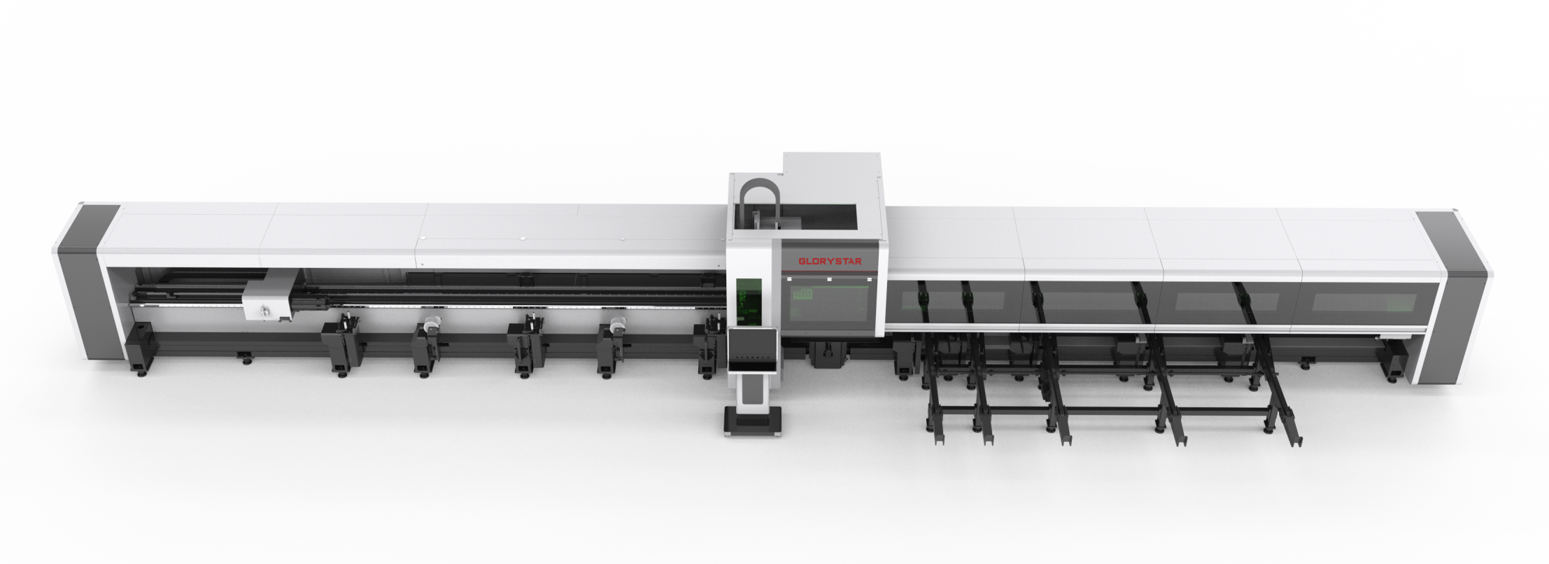 The NS-HG Series three-chuck heavy-duty tube laser cutting machine from Glorystar Laser offers fast, flexible, and stable cutting. Its three-chuck structure enables full tube cutting and zero tail material processing, maximizing material efficiency. High-quality chucks ensure precise clamping, while the side-hanging welded bed offers strong vibration resistance and stability.