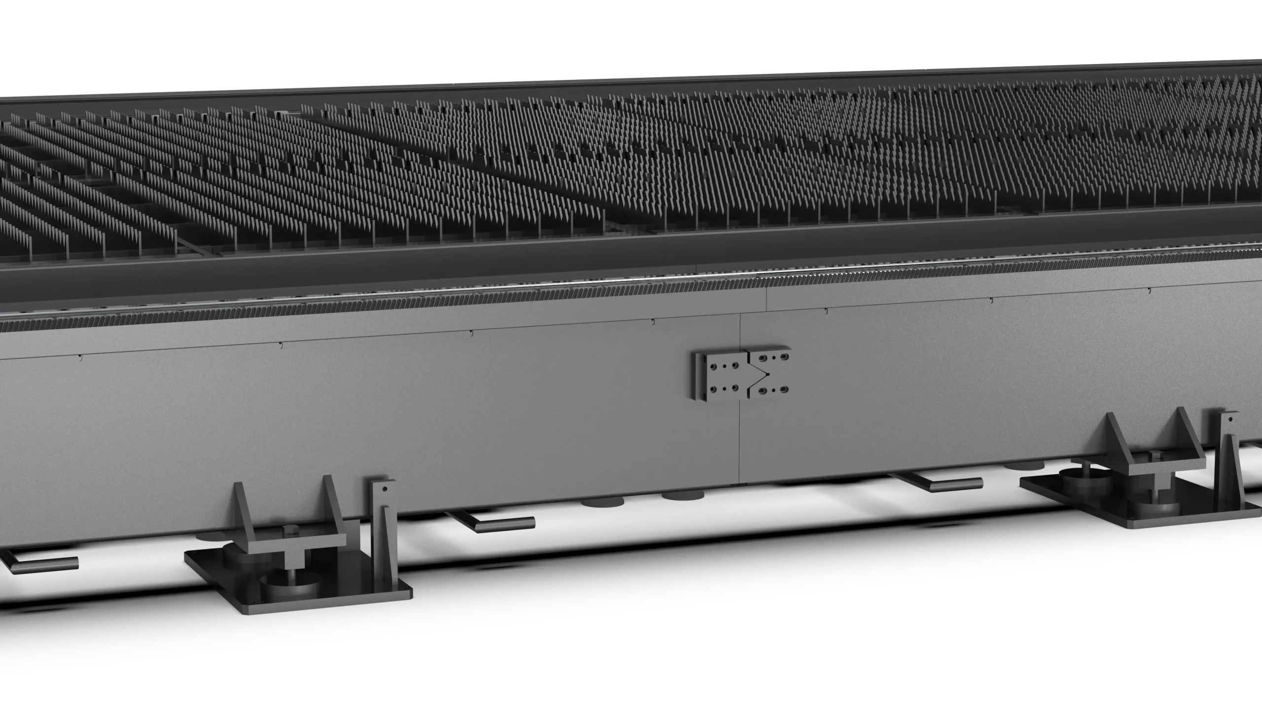 Employs an inner-outer split modular bed design, enabling unlimited customization of bed dimensions. The separation of the transmission and plate-loading systems effectively prevents deformation caused by heavy loads, increases bending rigidity by more than 50%, and ensures sustained, high-precision processing stability over extended periods.